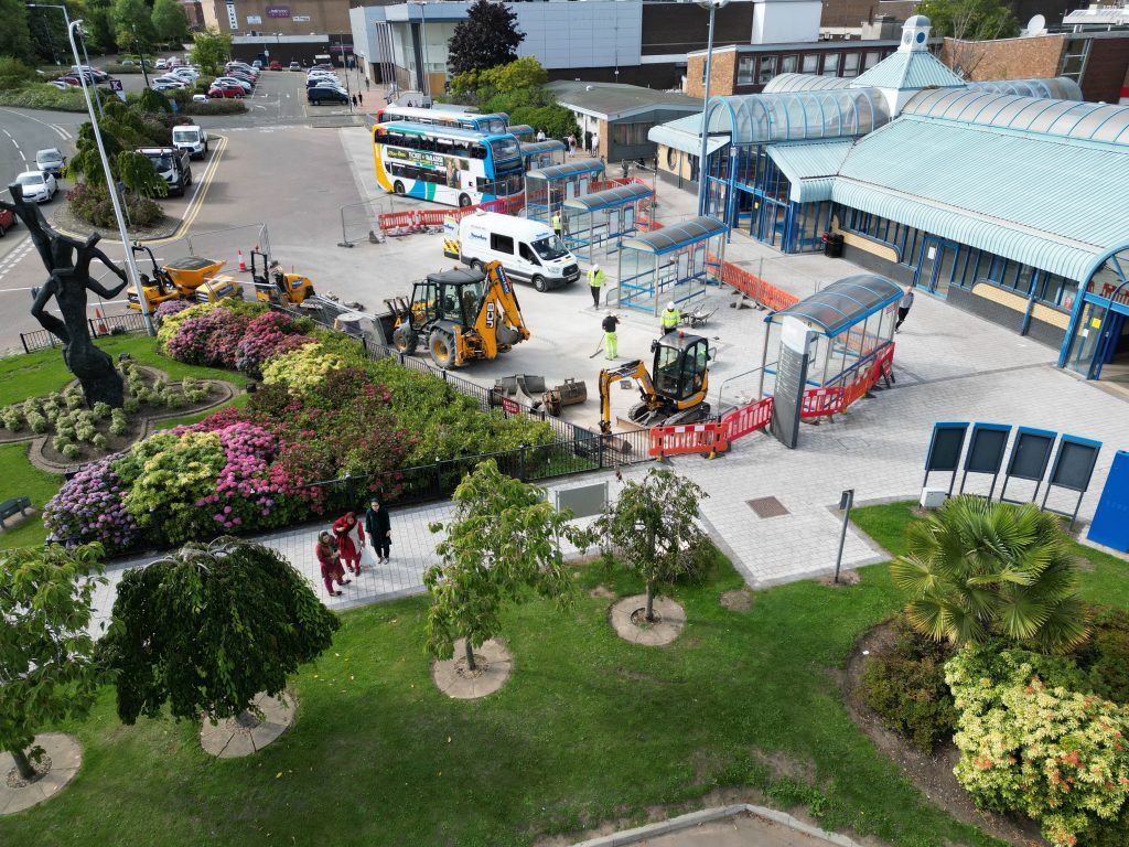 Improvements made to the public realm of streets and public spaces, encompassing elements like pavements, roads, street furniture, lighting and landscaping.